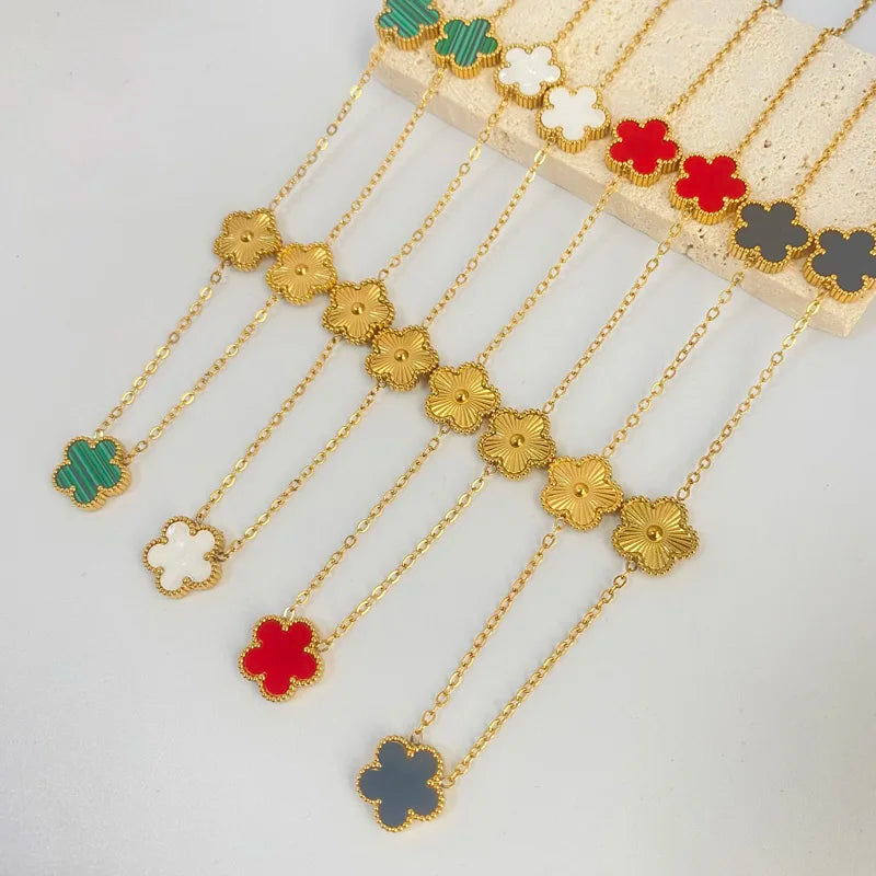 Stainless Steel Double Sided Five Folower Clover Bracelet for Women Girls Fashion 2024 New Elegant Charm Bracelets Jewelry Gifts