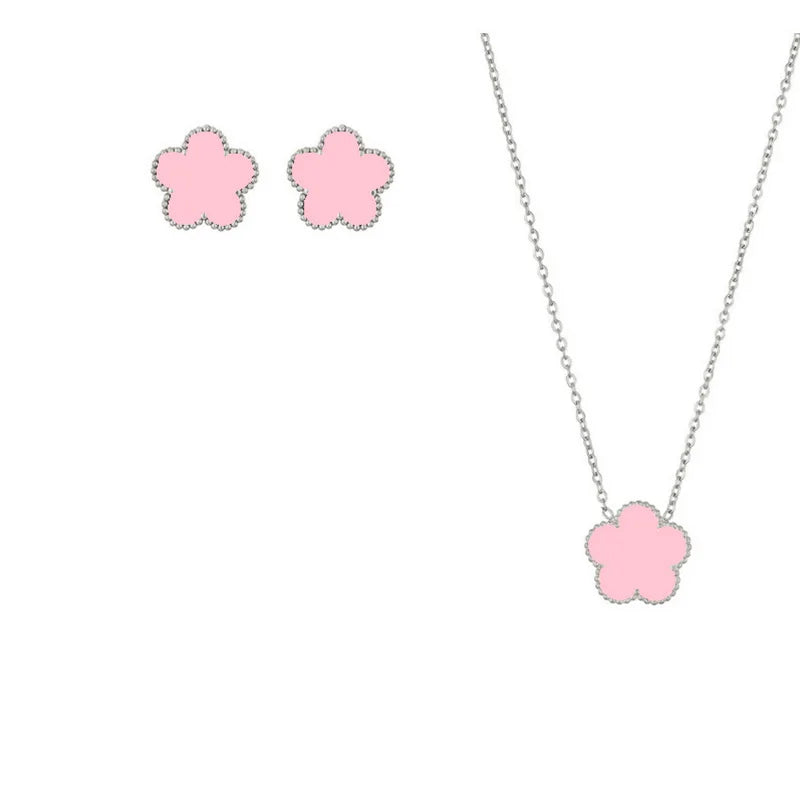 Double Sided Plant Flower Design Jewelry Set for Women Girls Stainless Steel Elegant Clover Pendant Necklace Earrings Bracelet